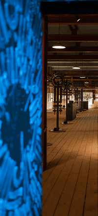 The exhibition was put together in just two days. On the opening day, the mood was carefully set to draw visitors into the 55 story. Waiters, wearing 55 masks, served champagne, adding to the unique atmosphere. The space had a 50-meter hallway with three stops, where pillars shared the background and meaning of 55, and why this location was chosen.